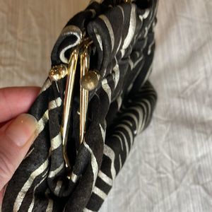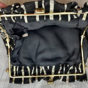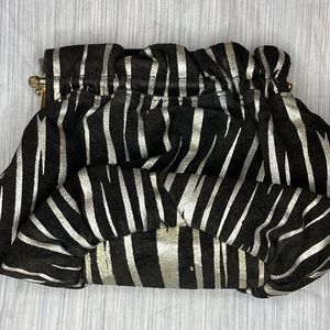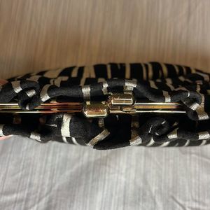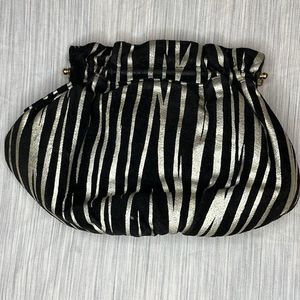 Vintage 80’s black and silver striped clutch with clam metal opening
