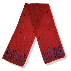 Title: Vintage 70s 80s made in Italy Ralfeuax rectangle neck hair scarf red funky v print