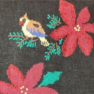 Vintage 80s 90s Poinsettia Cardinal Christmas Holiday Sweater Vest 1X