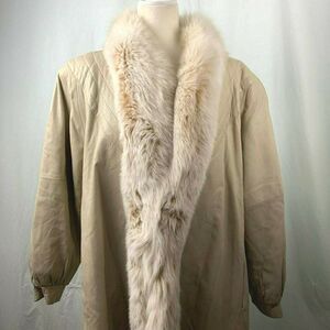 Vintage 80s Full Length Coat Lamb Leather Dyed Fox