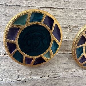 Vintage 80s Gold Tone Enameled Circle Earrings