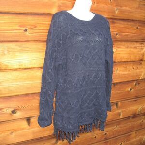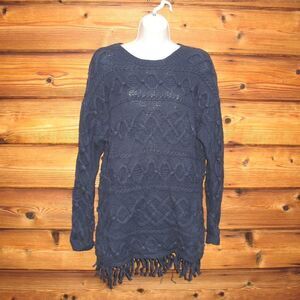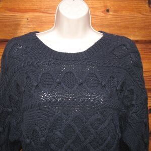 Vintage 80s Hand Knit Navy Heavy Oversize Sweater
