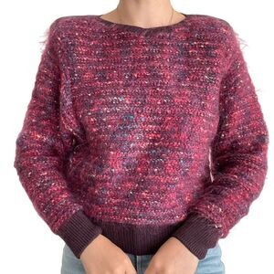 Vintage 80s St. John Rainbow Purple Fluffy Mohair Retro Oversized Sweater Sz S