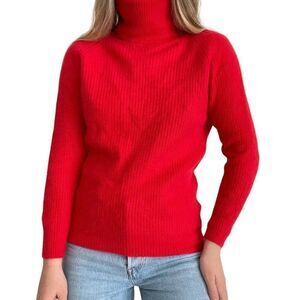 Vintage 80s Womens Casual Corner Red Angora Blend Ribbed Turtleneck Sweater Sz S