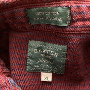Vintage 90s BAXTER BRAND Indigo Denim Button Down Shirt XL Windowpane Plaid LS