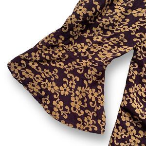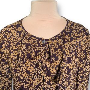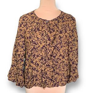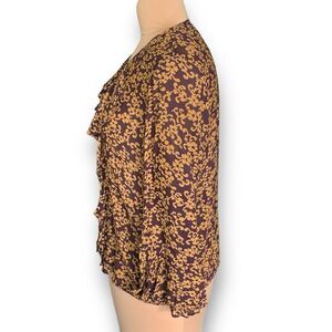 Vintage 90s Blouse Purple Ruffle Front Pirate Dark Floral Bell Long Sleeve Sheer