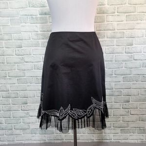 Vintage 90s Cache Womens 6 Black Skirt Beaded Sequin Floral Tulle Trim Aline