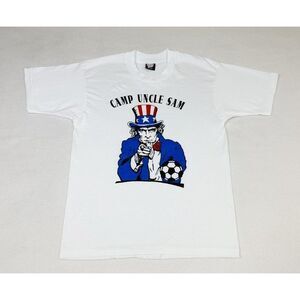 Vintage 90s Camp Uncle Sam Soccer T-Shirt Large Sports Single Stitch