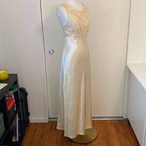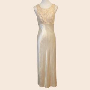 Vintage 90's Champagne/ Cream Lace Bodice Satin Maxi Gown Size 7/8