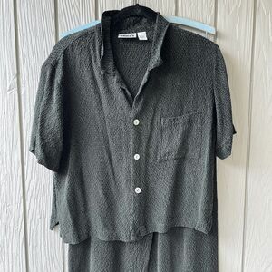 Effortlessly cool vintage 90s two-piece set by Chico’s Design. Made in the USA from luxe 100% cupra rayon with a seersucker-style crinkled texture that drapes beautifully and resists wrinkles. The deep forest green color and clean silhouette make it feel surprisingly modern—like something you'd find at Quince or Another Tomorrow.