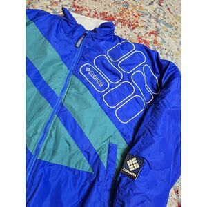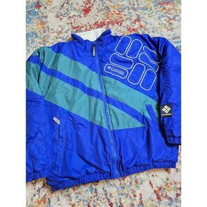 Vintage 90's Columbia Men's Colorblock Puffer Jacket Blue Green Big Logo Size Lg