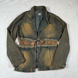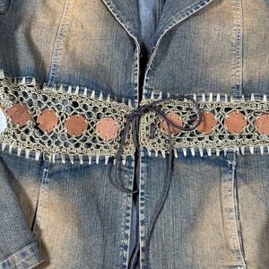 Vintage 90s Crest Women’s Boho Denim Jacket in pre owned condition. Please view all photos for signs of wear. Size women’s XL. Pit to pit 20 1/4”, total length 24 1/4”. 🤎 2000s Boho Western / Cowgirl Chic Revival