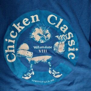Vintage 90s Single Stitch Custom Chicken Classic Willamalane VIII Run Springfield, Oregon T-Shirt, Made in USA, Size Large - Measures p2p=21" Length=30" - Excellent Condition, No Flaws