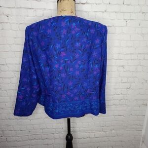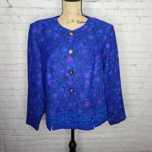 Vintage 90s Dark Botanical Cottagecore Purple Leslie Fay Blouson Jacket