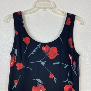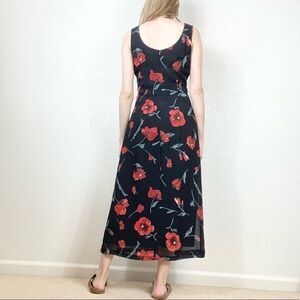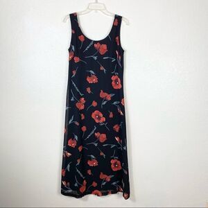 Vintage 90’s Donna Ricco Black & Red Floral Sleeveless Maxi Slip Dress