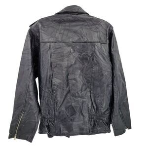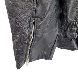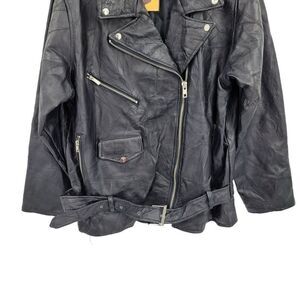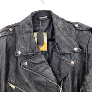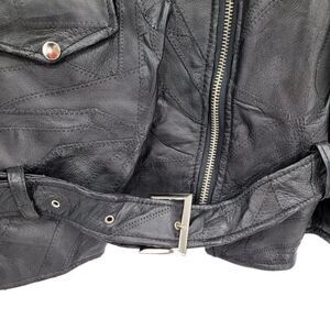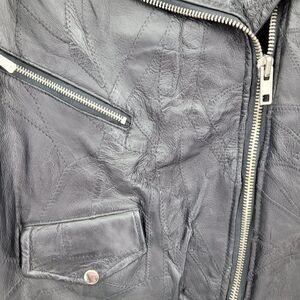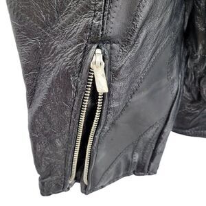 Vintage 90's Flight Path Leather Jacket Deadstock Moto Biker Patchwork Black XL