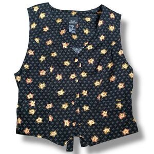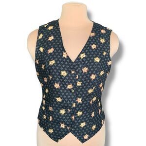Vintage 90s Floral Print Tailored Suit Waistcoat Vest Adjustable Tie Back 10