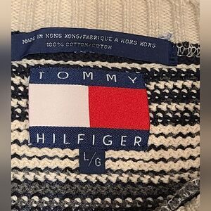 Vintage 90s Heavy Knit Plaid Tommy Hilfiger Sweater Preppy Nautical pullover | L