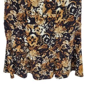 Vintage 90's Jones Wear Skirt Midi Trumpet Ruffle Abstract Burnt Floral Brown 8