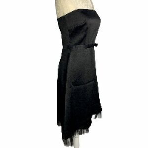 Vintage 90s Laundry Strapless Dress 4 Black Satin Tulle Petticoat Grosgrain Belt