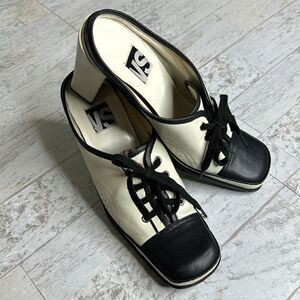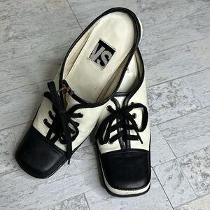 Vintage 90’s Magma Pale Green Black Saddle Mules 3.5” Heel Size 6m