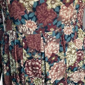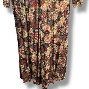 Vintage 90s Maxi Dress Brown Dark Granny Floral Printed Long Sleeve Flowy 10