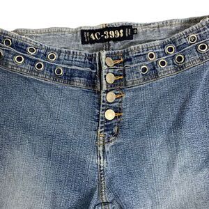 Vintage 90s Mid Rise Denim Cut Off Shorts 28 Med Wash Button Fly Stretch Rivets