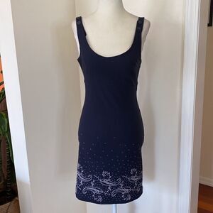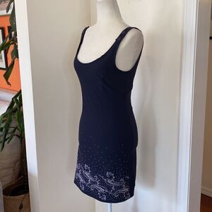 Vintage 90's Navy Fitted Mini Dress with Paisley Glitter Print Size Small