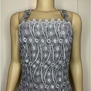 Vintage 90s Silver Glitter Lace Overlay Maxi Formal Dress PTP 19”