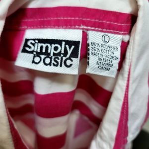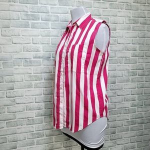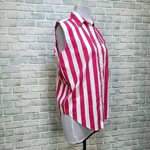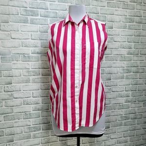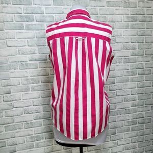 Vintage 90s Simply Basic L Pink White Vertical Striped Sleeveless Button Up Top