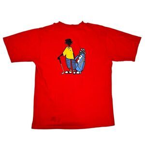 Vintage Stussy 90s Rasta Golf Stickman T-Shirt Large Red Made In USA