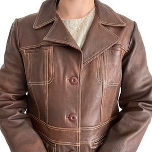 Vintage 90s Womens Wilsons Leather Brown Retro Mid Length Mid Mod Jacket Sz M