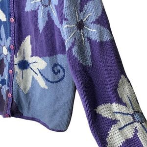 Vintage 90’s Y2K Cottagecore Coldwater Creek Cardigan Blue With Floral Pattern size medium