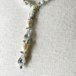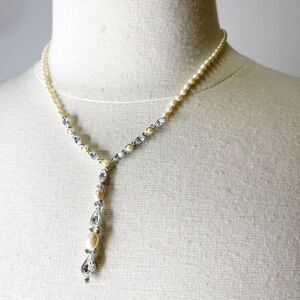 Vintage 90s Y2K Monet Jewelry Necklace Pearl Rhinestone Teardrop Glam Regal