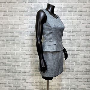 Details: Vintage 90s Y2K Blue Grey Tweed 2pc Set Peplum Tank with Button Back Closure & Wrap Mini Skirt