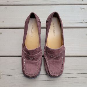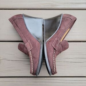 Vintage 90s y2k Brown Faux Vegan Suede Wedge Heel Square Toe Punk Penny Loafers