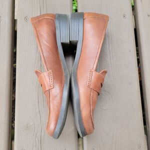 Vintage 90s y2k Brown Leather Moc Toe Moccasins Driving Penny Loafers Flats