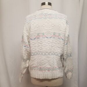 Vintage 90s y2k Cottagecore Kawaii Knit Pastel Bird Designs Pullover Sweater Md