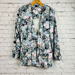 Vintage 90s Breakin’ Loose Navy Floral Tapestry Blazer