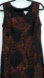Julian Taylor vintage black back zipper entry scoop neck sleeveless side slited maxi shift dress in a burned out paisley scroll print.