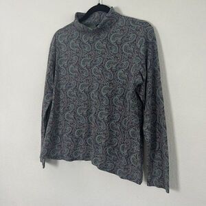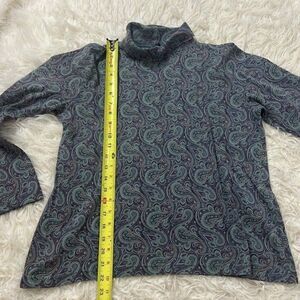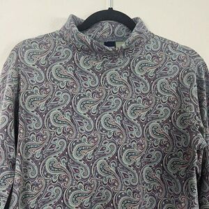 Vintage 90s LL Bean Womens Mock Neck Long Sleeve Purple Paisley Shirt Small