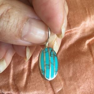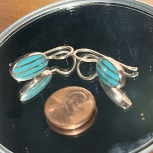 Vintage 925 Silver and Turquoise Oval Shaped Wire Earrings