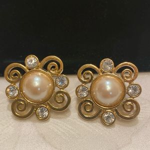 Vintage AJC Faux Pearl And Rhinestone Earrings