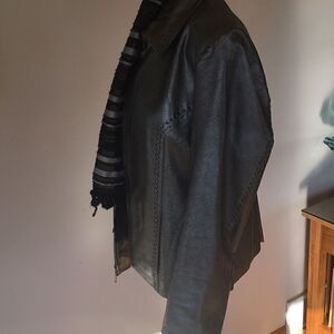 Vintage ANANGE Silver animal print lining Leather Jacket Whip Stitch pockets M