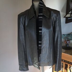 Vintage ANAGE brand silver Metallic toneleather jacket size Medium
