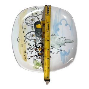 This vintage ceramic plate features a hand-painted horse-drawn carriage design, highlighting artistry and tradition. Its square shape and subtle hues make it a timeless decorative piece.