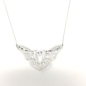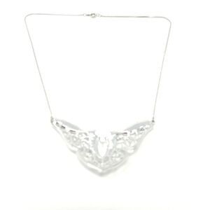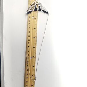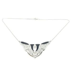 Vintage Abstract Silver Tone and Black Enmale Pendant Necklace, Filigree Design