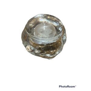 Vintage Abstract heavy crystal tea light candle holder 2.5”