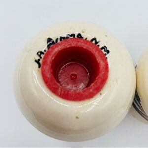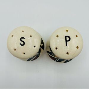 This part of vintage salt and pepper shakers is in excellent condition. There is some crazing on the top, but otherwise there are no chips or cracks. They are handmade and hand painted. They are signed JA Acoma on the bottom. Each one is approximately 3” tall.