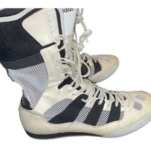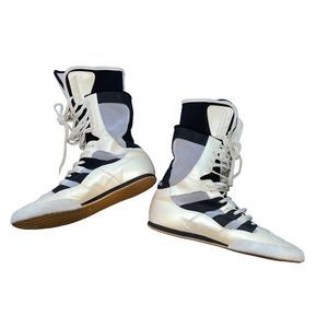 Unleash your inner boxing legend with the Vintage Adidas Adistar Professional Boxing Shoes. A true masterpiece of German engineering, these exceptional mens shoes showcase authentic craftsmanship, meticulous attention to detail, and unparalleled quality. Designed for the discerning athlete, their striking aesthetics and flawless performance set them apart from the rest. Discover the feeling of luxury as you lace up these rare vintage gems, meticulously designed to enhance your every move. Dare to stand out in the ring with an unbeatable combination of heritage and unrivaled talent.